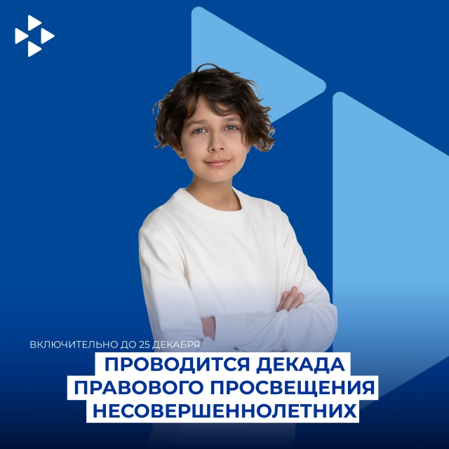 В целях профилактики правонарушений и преступлений среди несовершеннолетних в период с 15 по 25 декабря 2025 года проводится Декада правового просвещения несовершеннолетних. Основная цель данного мероприятия – формирование законопослушного поведения у детей и подростков, а также повышения правовой грамотности родителей несовершеннолетних.