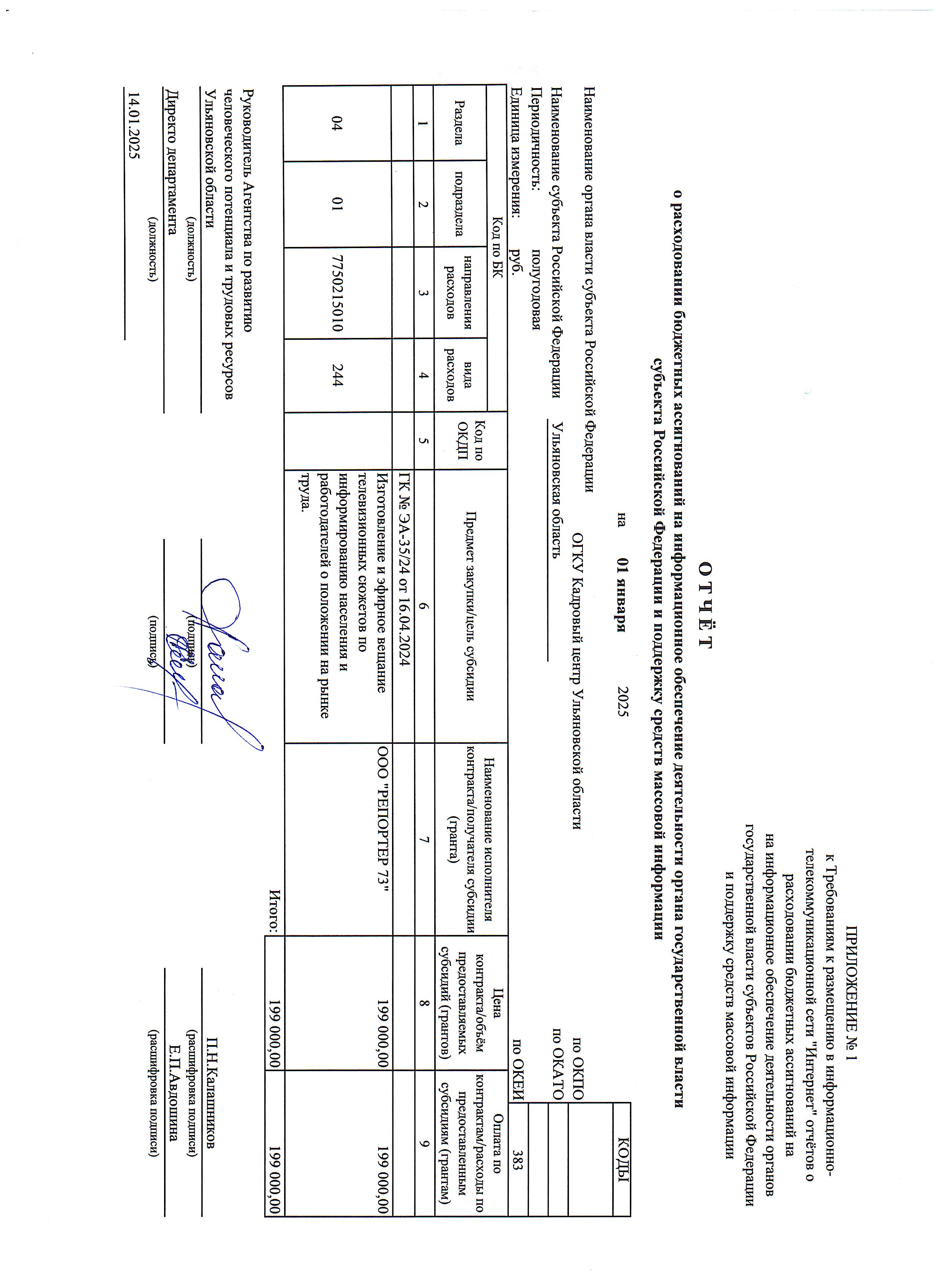 Отчет о расходовании бюджетных ассигнований на информационное обеспечение деятельности органа государственной власти субъекта Российской Федерации и поддержку средств массовой информации на 1 января 2025 год