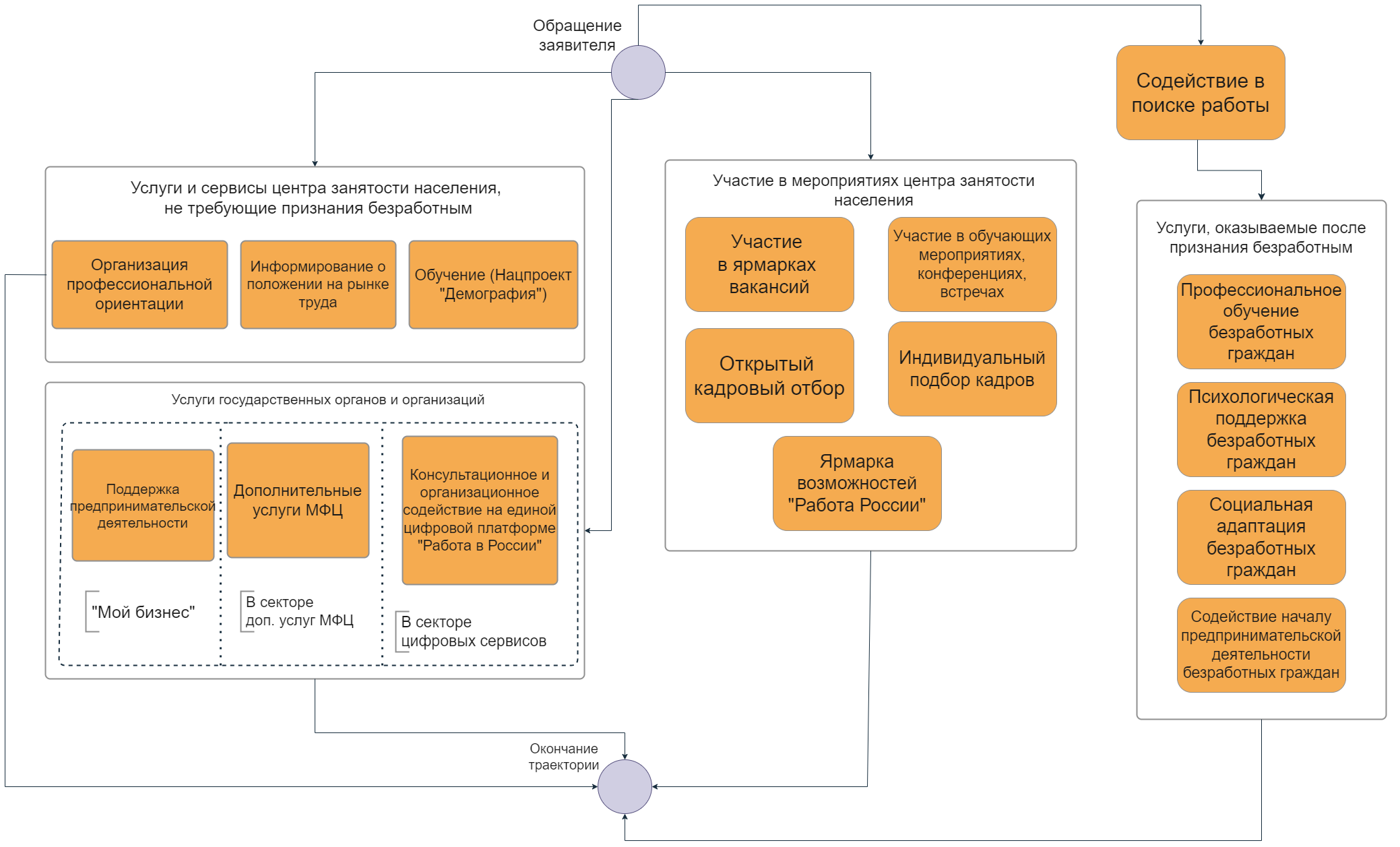 Блок-схема траекторий оказания услуг и сервисов в рамках