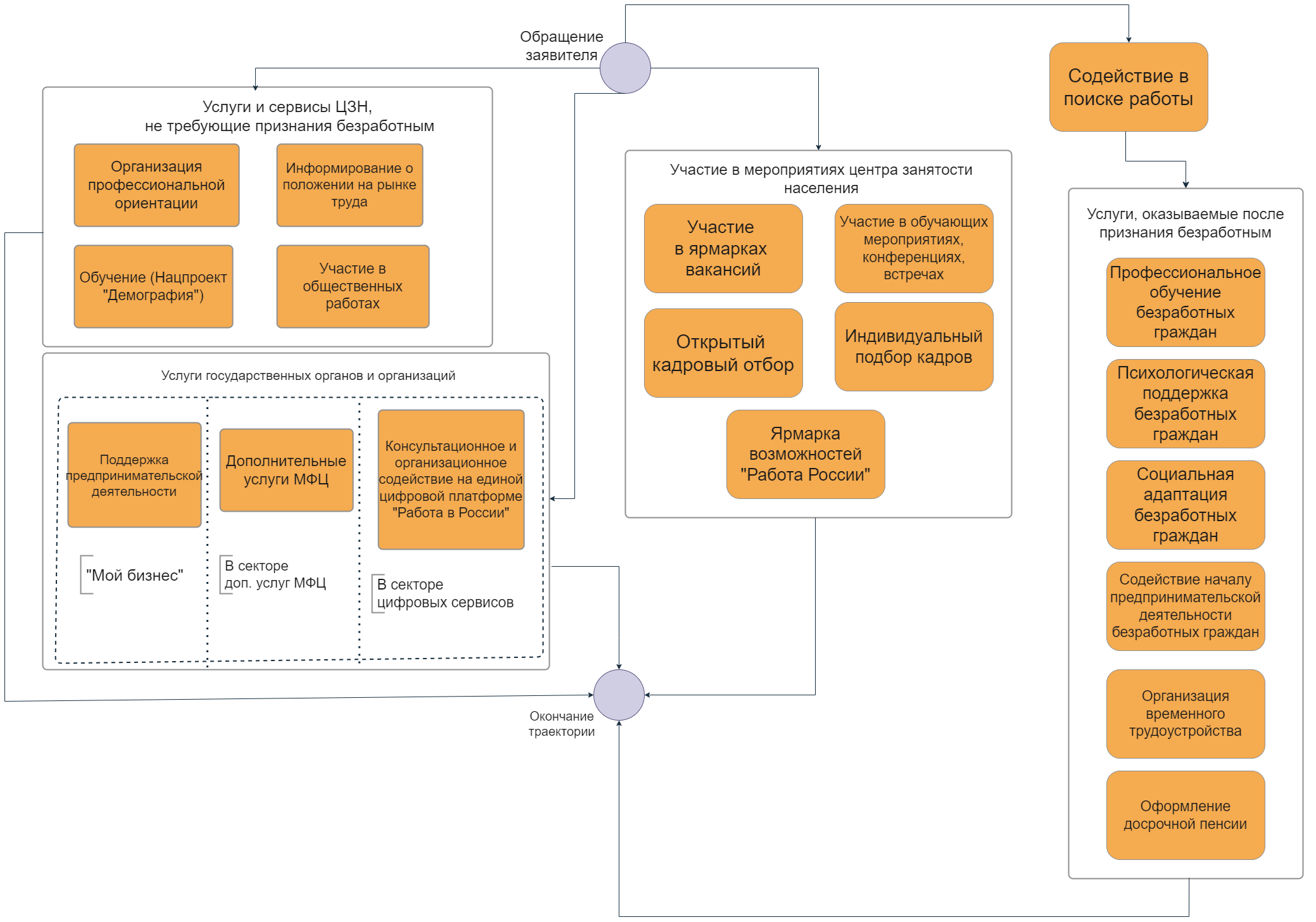Блок-схема траекторий оказания услуг и сервисов в рамках