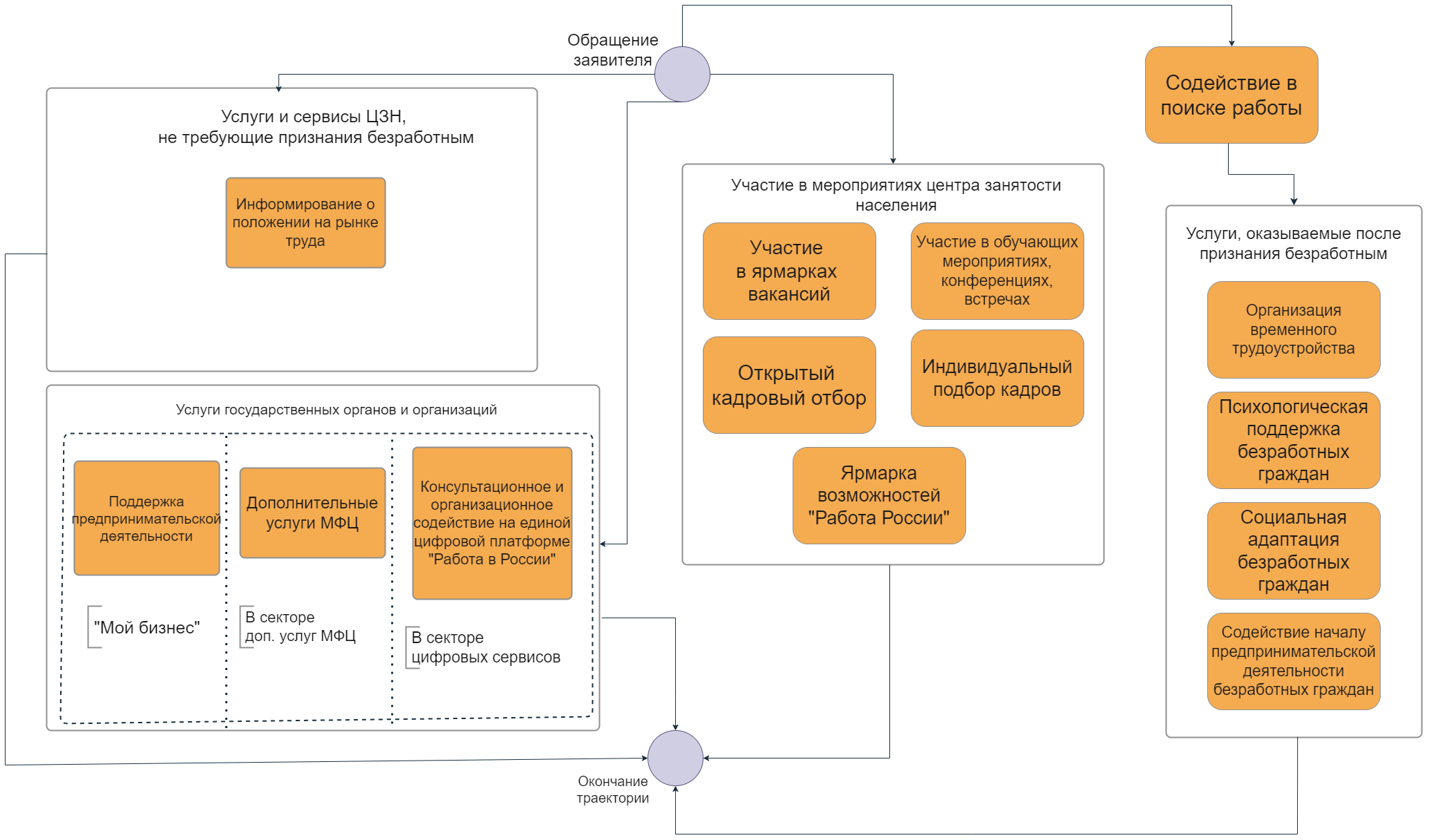 Блок-схема траекторий оказания услуг и сервисов в рамках