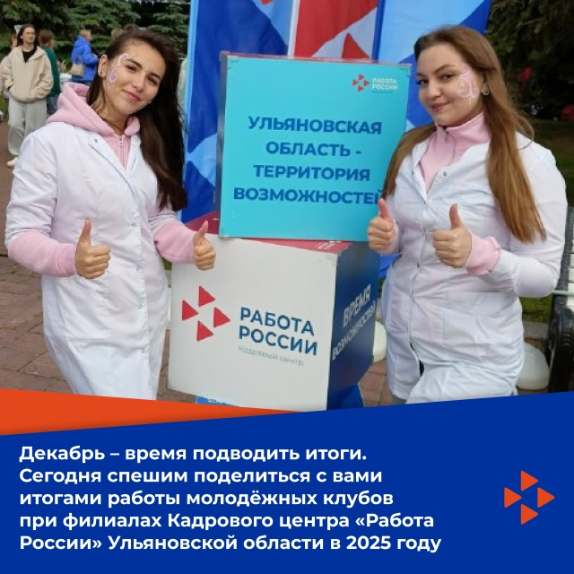 Декабрь – время подводить итоги. Сегодня спешим поделиться с вами итогами работы молодёжных клубов при филиалах Кадрового центра «Работа России» Ульяновской области в 2025 году