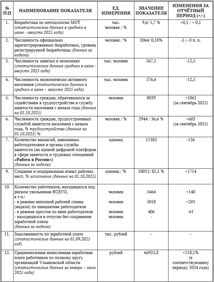 По состоянию на 24.10.2025 работодателями Ульяновской области была подана информация о наличии 11383 свободных рабочих места и вакантных должностей на Единой цифровой платформе в сфере занятости и трудовых отношений «Работа в России».